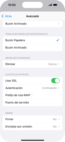 Pulsa el indicador junto a "Usar SSL" para activar la función.