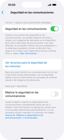 La función de comunicación segura registra contenido sensible en las fotografías y los vídeos que se envían y reciben en los dispositivos Apple seleccionados además de proporcionar información y avisos sobre este contenido. Puedes utilizar esta función en relación con el ajuste de Tiempo de pantalla de tu grupo familiar.