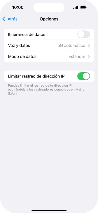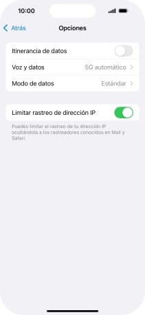 Pulsa el indicador junto a "Itinerancia de datos" para activar o desactivar la función.