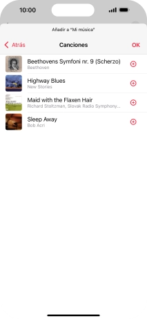 Desplázate a la categoría deseada y pulsa el icono de añadir junto al archivo de música correspondiente.