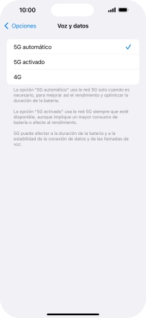 Si deseas activar el uso preferente de 5G, pulsa 5G activado.