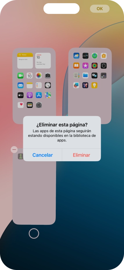 3. Elimina una página de la pantalla de inicio