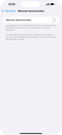 Pulsa el indicador junto a "Silenciar desconocidos" para activar o desactivar la función.