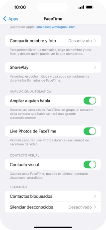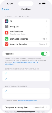Pulsa el ajuste deseado bajo "SE TE PUEDE CONTACTAR POR FACETIME EN".