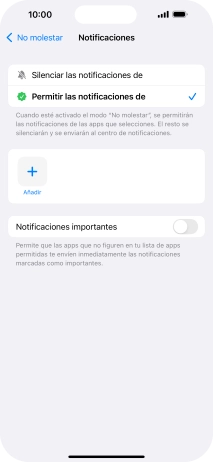 Pulsa Apps y sigue las indicaciones de la pantalla para elegir qué apps pueden enviarte notificaciones cuando No molestar está activado.