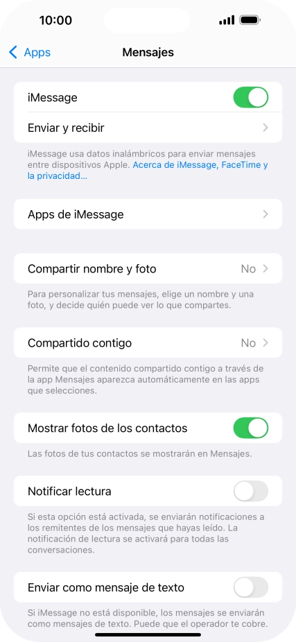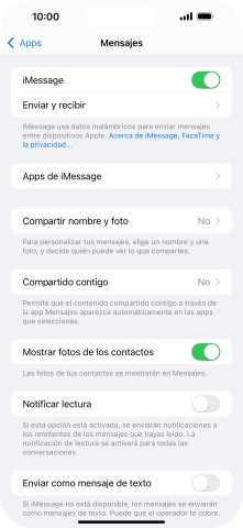 Si activas la función, los iMessages se enviarán como mensajes cortos normales en caso de que este servicio no esté disponible.