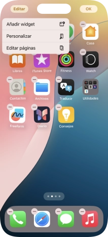 Pulsa en un lugar cualquiera de la pantalla de inicio y mantén la pulsación unos instantes.