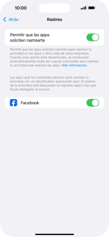 Pulsa el indicador junto a "Permitir que las apps soliciten rastrearte" para activar o desactivar la función.