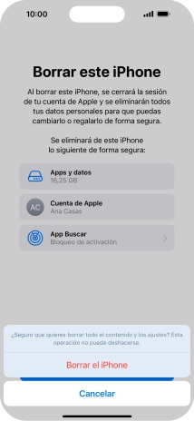 Introduce la contraseña de tu ID de Apple y pulsa Desactivar. Espera unos instantes mientras el teléfono restablece la configuración predeterminada. Sigue las indicaciones de la pantalla para configurar el teléfono y dejarlo listo para su uso.
