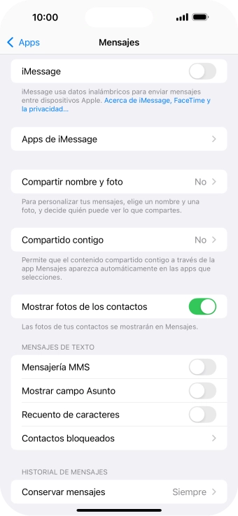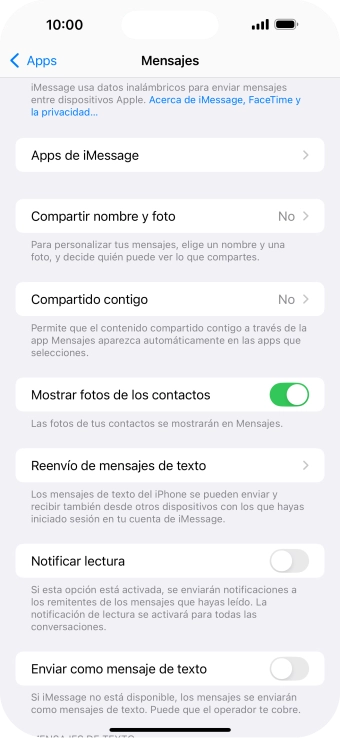 Si activas la función, los iMessages se enviarán como mensajes cortos normales en caso de que este servicio no esté disponible.