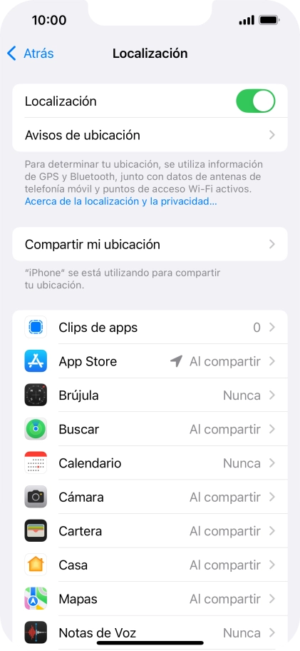 Pulsa el indicador junto a "Localización" para activar o desactivar la función.