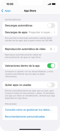 Pulsa el indicador junto a "Quitar apps no usadas" para activar o desactivar la función.