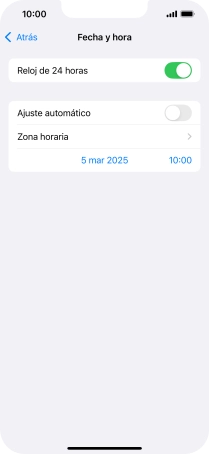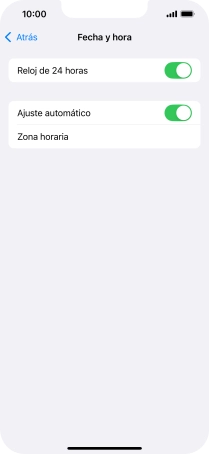 2. Activa el ajuste automático de la zona horaria, la fecha y la hora