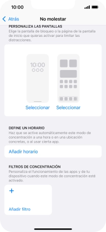 Pulsa Añadir horario y sigue las indicaciones de la pantalla para seleccionar los ajustes de la activación automática de No molestar.