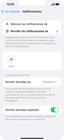 Pulsa Personas y sigue las indicaciones de la pantalla para seleccionar de qué contactos quieres recibir llamadas y notificaciones cuando No molestar está activado.