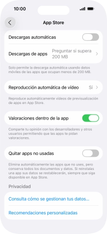 Pulsa el indicador junto a "Quitar apps no usadas" para activar o desactivar la función.