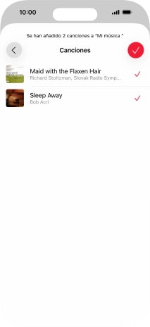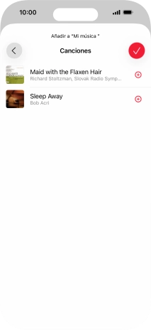 Desplázate a la categoría deseada y pulsa el icono de añadir junto al archivo de música correspondiente.