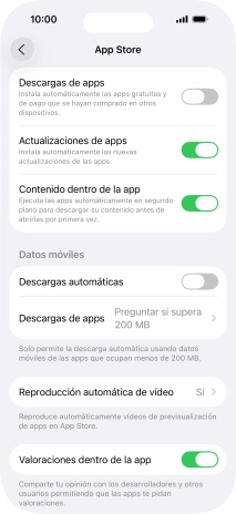 Pulsa el indicador junto a "Descargas de apps" para activar o desactivar la función.