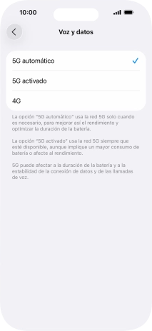 Si deseas activar el uso preferente de 5G, pulsa 5G activado.