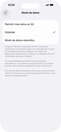 Selecciona los ajustes del consumo de datos en el Apple iPhone 17 iOS 26