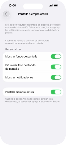 Pulsa el indicador junto a "Pantalla siempre activa" para activar o desactivar la función.