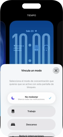 Puedes configurar el teléfono para que utilice una pantalla de bloqueo determinada junto con un modo de concentración seleccionado.