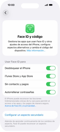Puedes utilizar tu Face ID para desactivar el código de seguridad, acceder a tus apps y autorizar pagos.