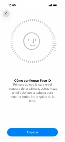 Pulsa Empezar y sigue las indicaciones de la pantalla para crear un código de seguridad con la función de reconocimiento facial (Face ID).
