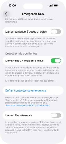 Pulsa el indicador junto a "Llamar tras un accidente grave" para activar la función.