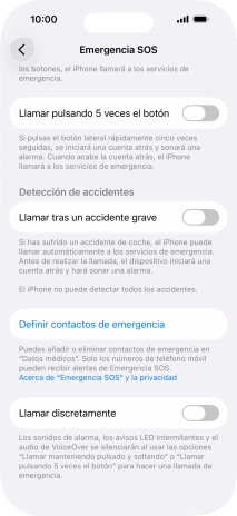 Pulsa Definir contactos de emergencia y sigue las indicaciones de la pantalla para insertar la información y tus contactos de emergencia.