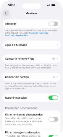 Si activas la función, los iMessages se enviarán como mensajes cortos normales en caso de que este servicio no esté disponible.