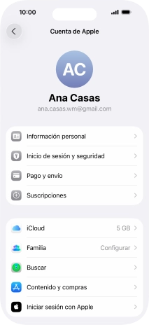Pulsa la Cuenta de Apple.