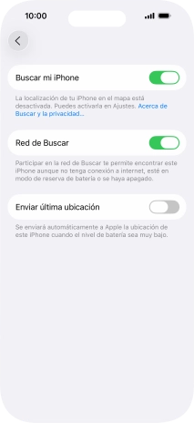 Pulsa el indicador junto a "Buscar mi iPhone" para activar la función.