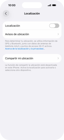Pulsa el indicador junto a "Localización" para activar o desactivar la función.