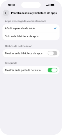 Para añadir nuevas apps descargadas a la pantalla de inicio y a la biblioteca de apps, pulsa Añadir a pantalla de inicio.