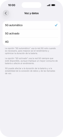 Si solo deseas utilizar la red 4G, pulsa 4G.