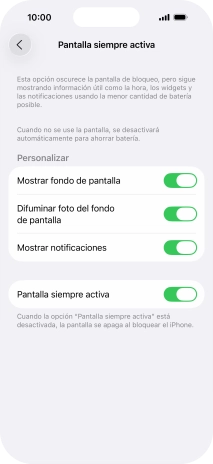 Pulsa el indicador junto a "Pantalla siempre activa" para activar o desactivar la función.