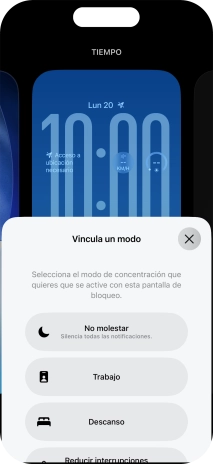 Puedes configurar el teléfono para que utilice una pantalla de bloqueo determinada junto con un modo de concentración seleccionado. Consulta aquí cómo seleccionar los ajustes del modo de concentración.