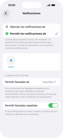 Pulsa Personas y sigue las indicaciones de la pantalla para seleccionar de qué contactos quieres recibir llamadas y notificaciones cuando No molestar está activado.