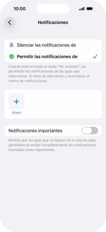 Pulsa el indicador junto a "Notificaciones importantes" para mostrar u ocultar las notificaciones importantes cuando No molestar está activado.