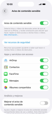 Para poder activar o desactivar el aviso de contenido sensible en las aplicaciones, debes haber activado el aviso de contenido sensible.