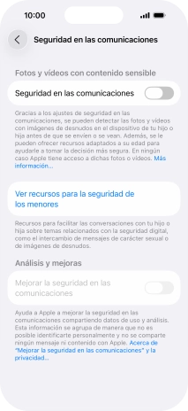 La función de comunicación segura registra contenido sensible en las fotografías y los vídeos que se envían y reciben en los dispositivos Apple seleccionados además de proporcionar información y avisos sobre este contenido. Puedes utilizar esta función en relación con el ajuste de Tiempo de pantalla de tu grupo familiar.