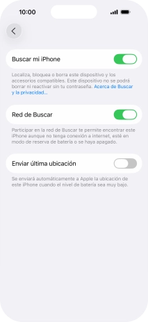 Pulsa el indicador junto a "Buscar mi iPhone" para activar la función.