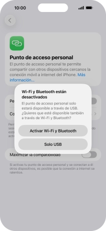 Si la función de wifi está activada, pulsa Solo Wi-Fi y USB.