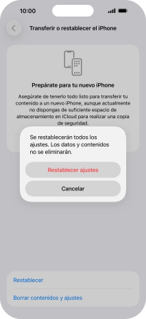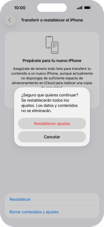 Pulsa Restablecer ajustes. Espera unos instantes mientras el teléfono restablece la configuración predeterminada. Sigue las indicaciones de la pantalla para configurar el teléfono y dejarlo listo para su uso.