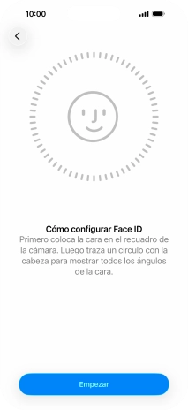 Pulsa Empezar y sigue las indicaciones de la pantalla para crear un código de seguridad con la función de reconocimiento facial (Face ID).