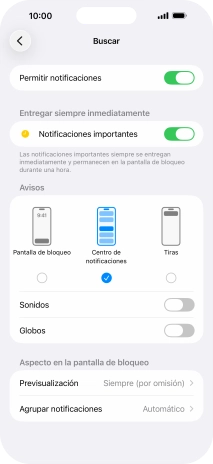 Para seleccionar la vista previa de las notificaciones en la pantalla de bloqueo, pulsa Siempre.