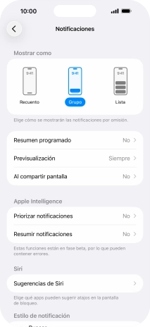 Puedes utilizar Apple Intelligence para resumir notificaciones y así ver rápidamente las que son más importantes para ti. Para poder utilizar la función, tienes que activar Apple Intelligence.