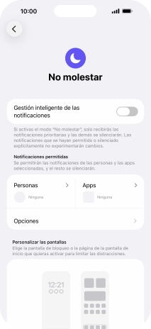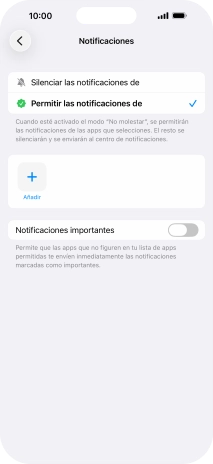 Pulsa Apps y sigue las indicaciones de la pantalla para elegir qué apps pueden enviarte notificaciones cuando No molestar está activado.