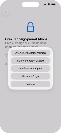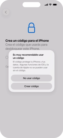 Sigue las indicaciones de la pantalla para activar el uso del código de seguridad o pulsa No usar código.
